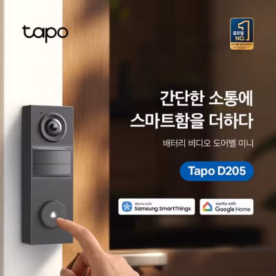 [티피링크] Tapo D205 2K 3백만 화소 AI 감지 내장 배터리 타입 도어벨