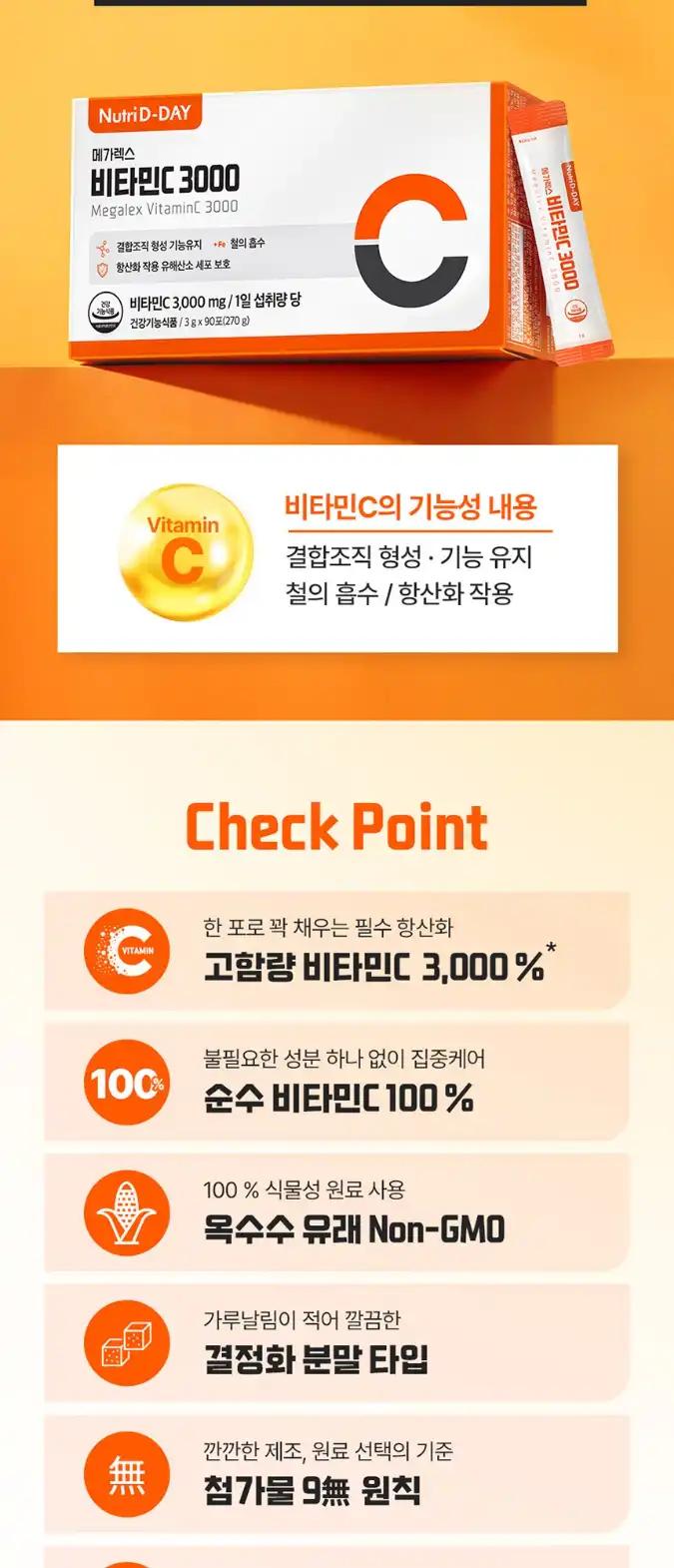 뉴트리디데이 메가렉스 비타민C 3000 1박스 90포