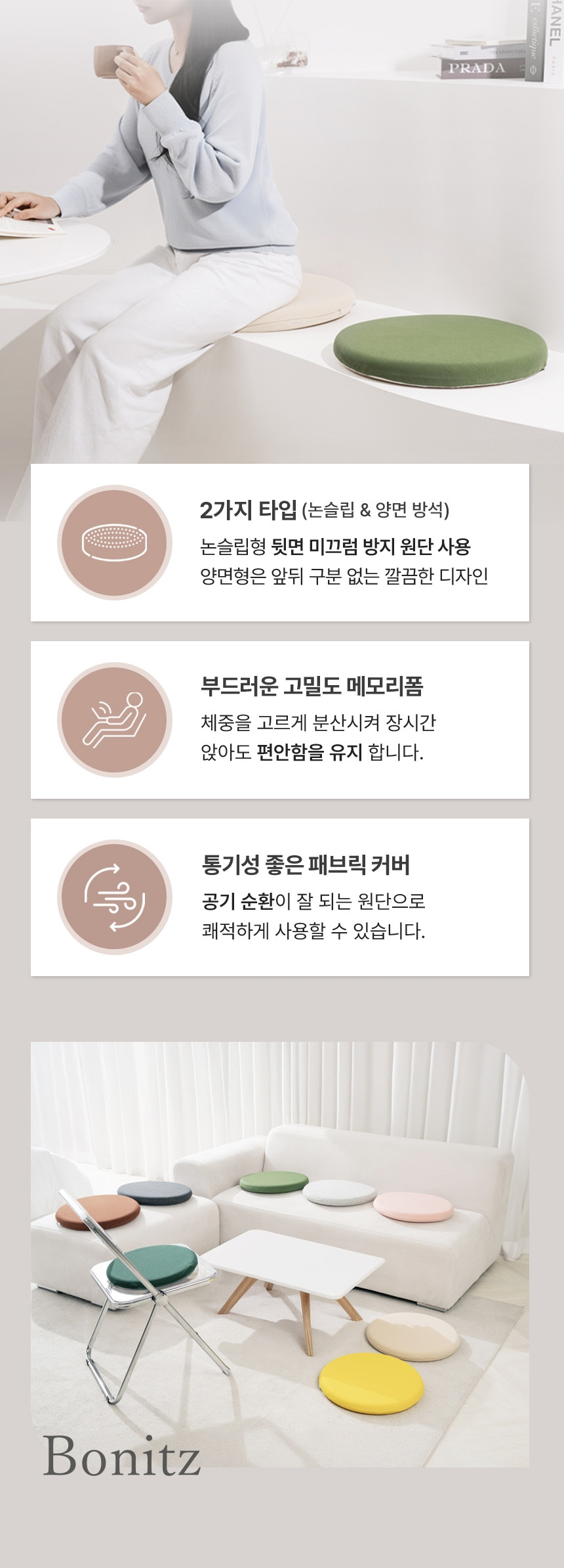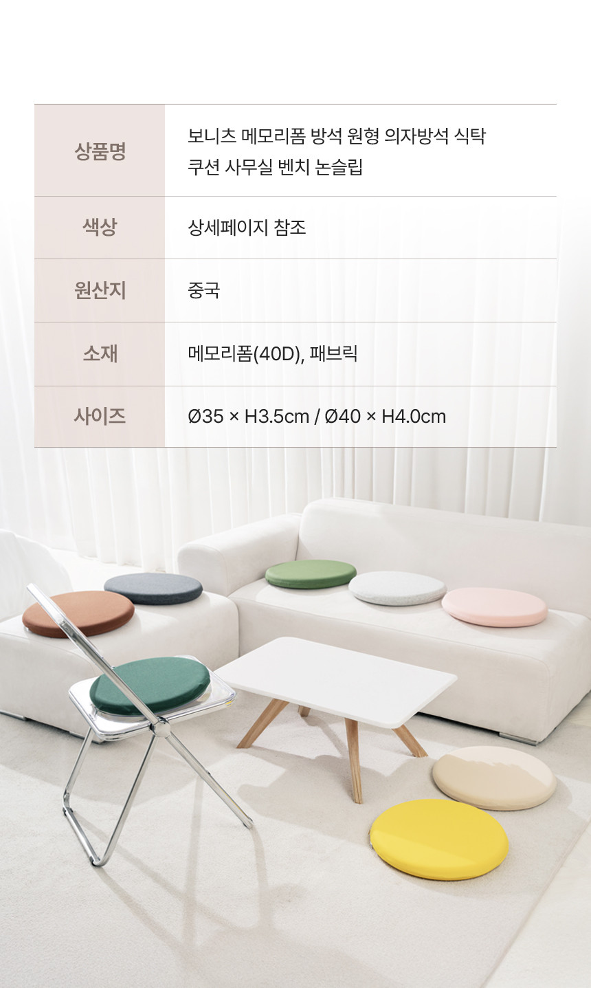 품목 : 보니츠 메모리폼 방석 원형🔎