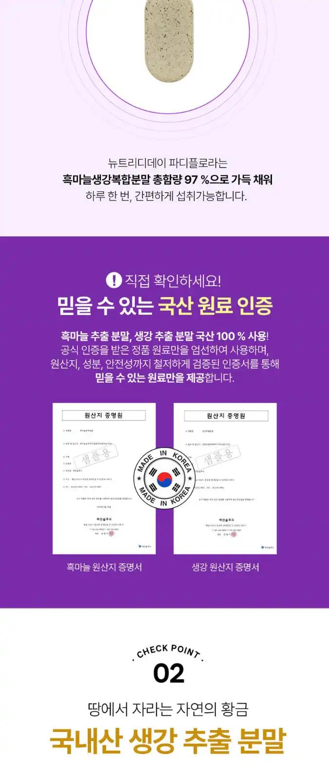 뉴트리디데이 파디플로라 흑마늘생강 1병 60정 2개월분