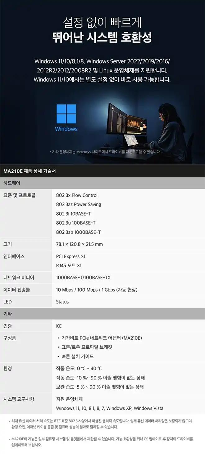 품명 : MA210E 기가비트 PCle 네트워크 랜카드