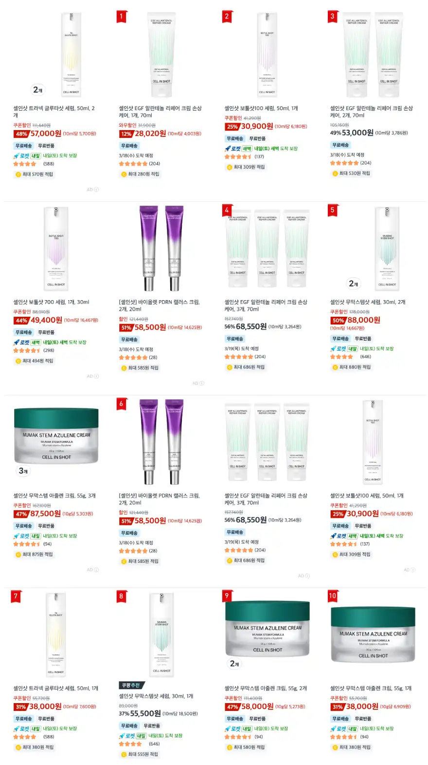 셀인샷 베스트 제품 중 1종 제공 (선정 후 제품 확정예정!)