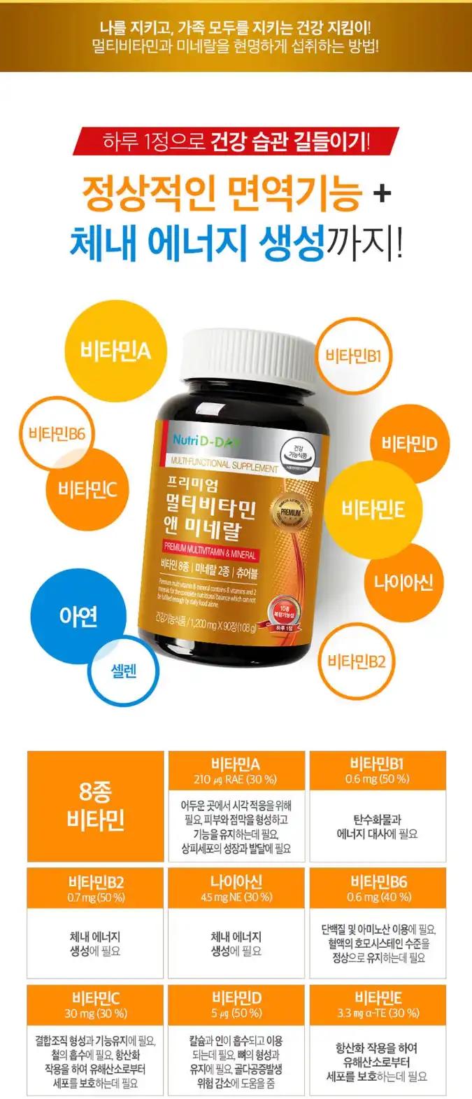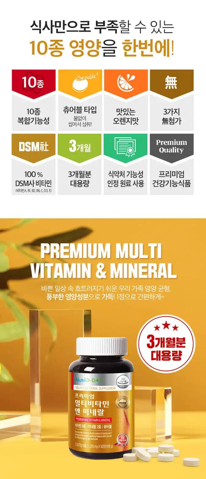 "프리미엄 멀티비타민" 멀티비타민 앤 미네랄 츄어블 1병 90캡슐