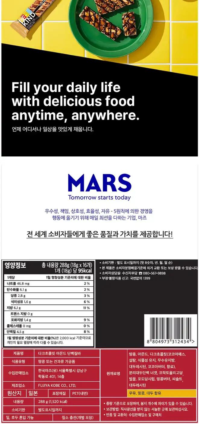 품명 : 비카인드 미니 다크초콜릿 아몬드 단백질바