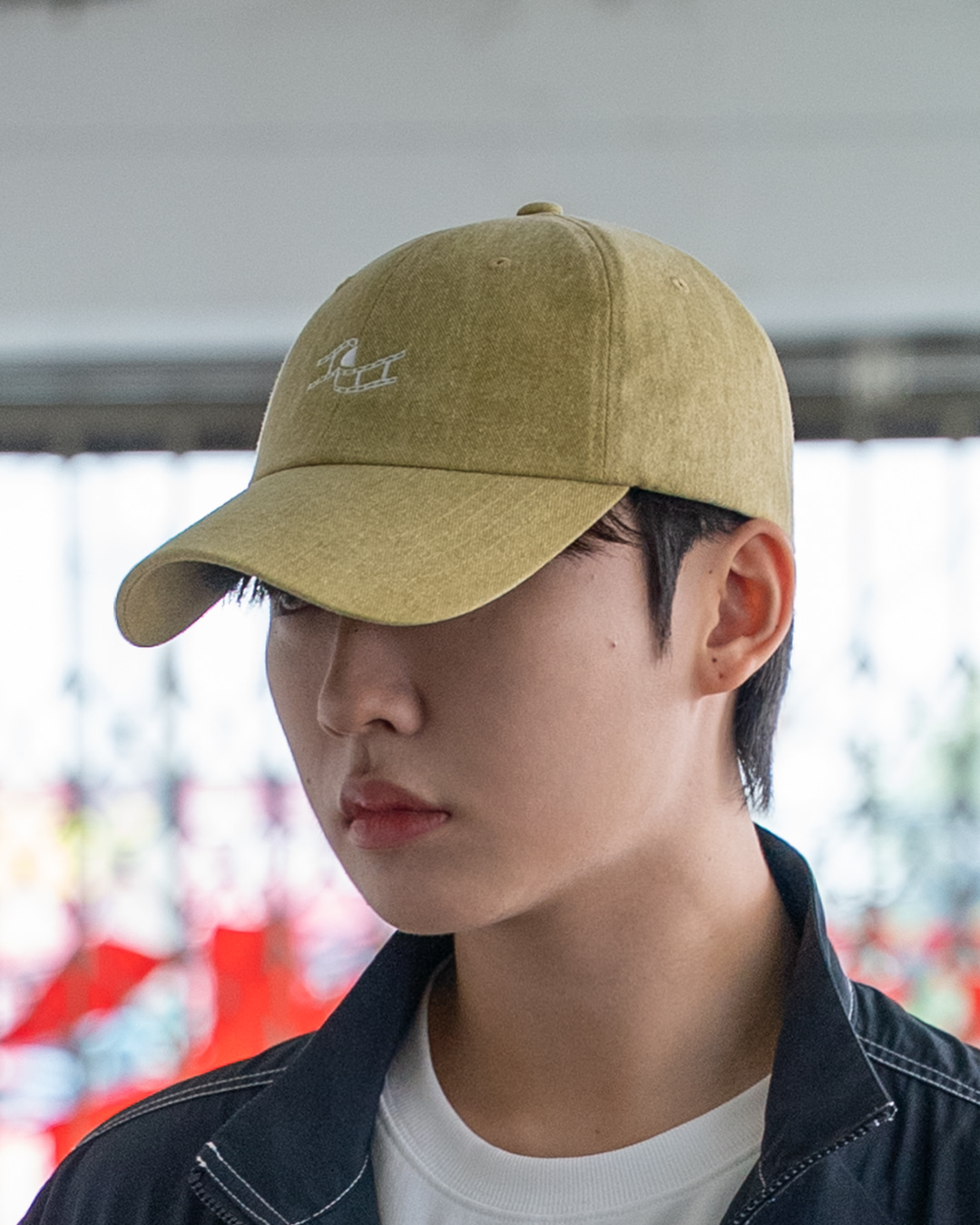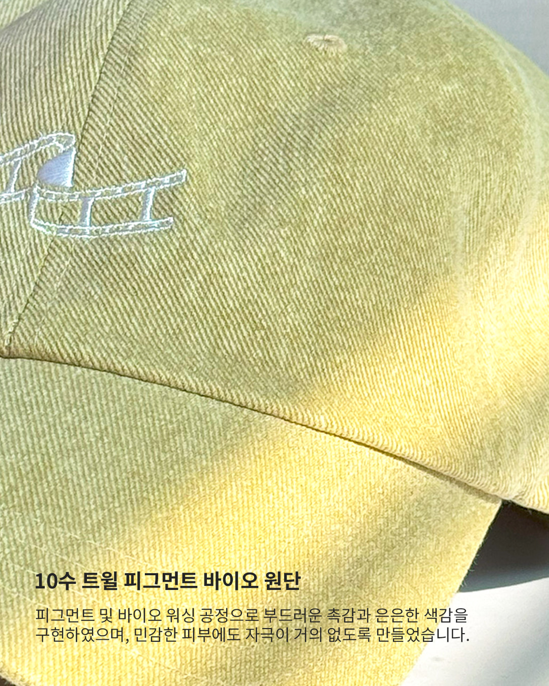 제품 : 오버사이즈 피그먼트 트윌 자수 볼캡(올리브)