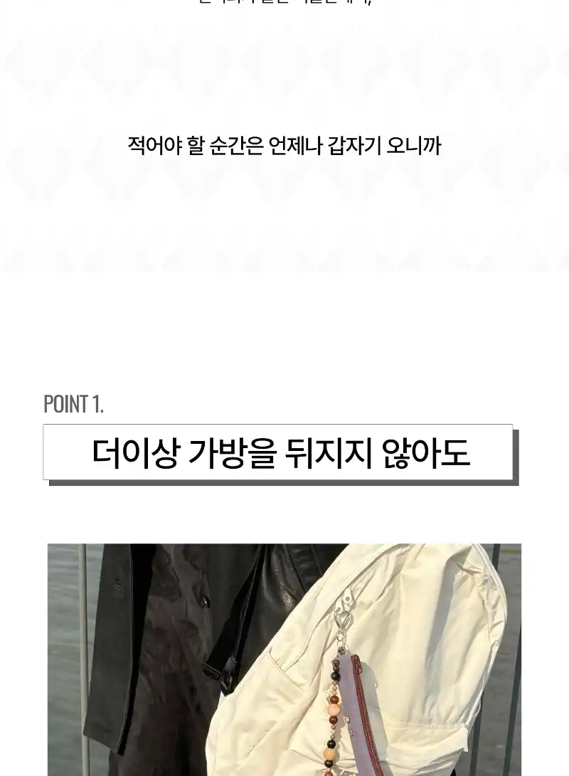 - 사지 2장이상 등록(ex. 가방에 달려 있는 모습, 펜이나 틴트 등 수납하는 모습 등)