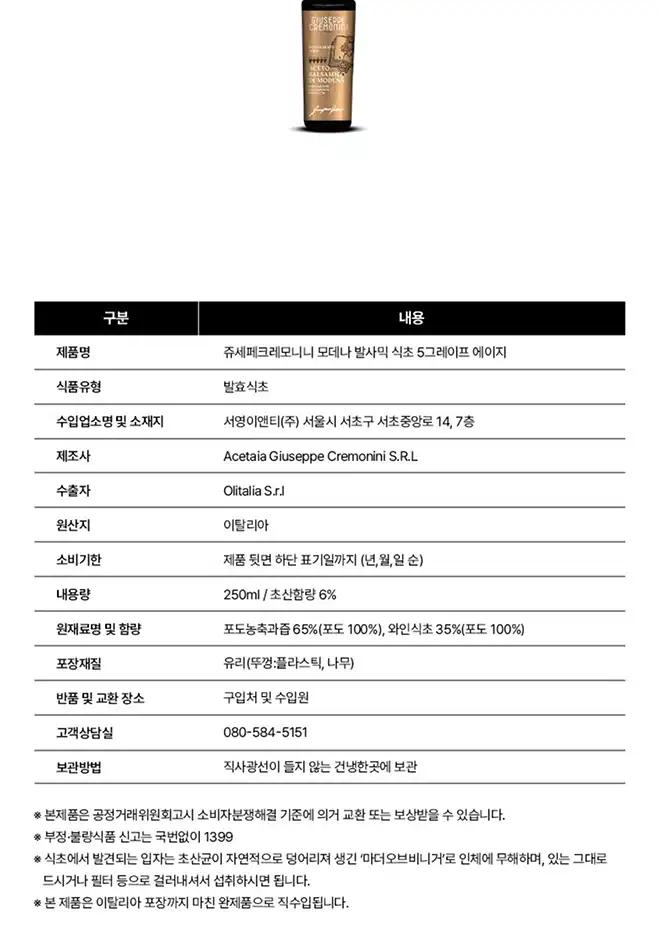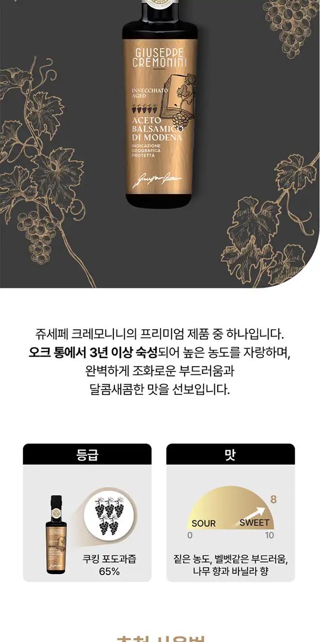 품명 : 쥬세페크레모니니 모데나 발사믹식초 5그레이프 에이지