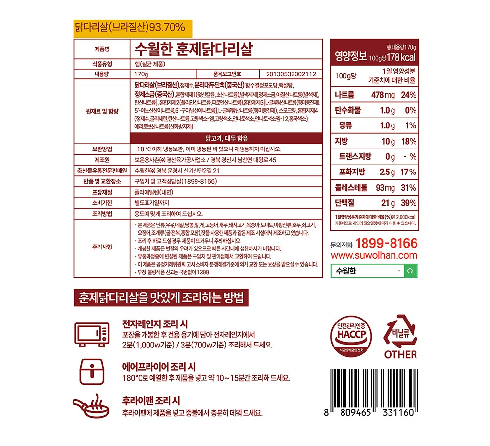 수월한 훈제 닭다리살 (냉동), 170g, 1개 (4,750원)