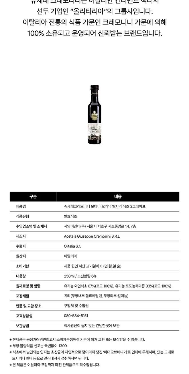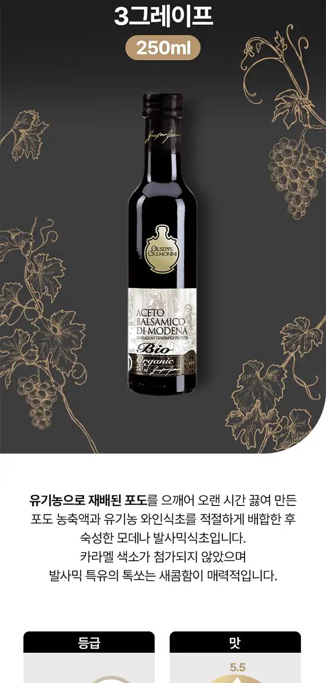 품명 : 쥬세페크레모니니 모데나 오가닉 발사믹식초 3그레이프