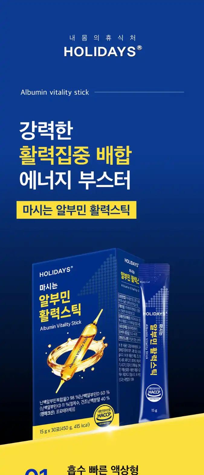 홀리데이즈 마시는 알부민 활력 스틱 1박스 30포