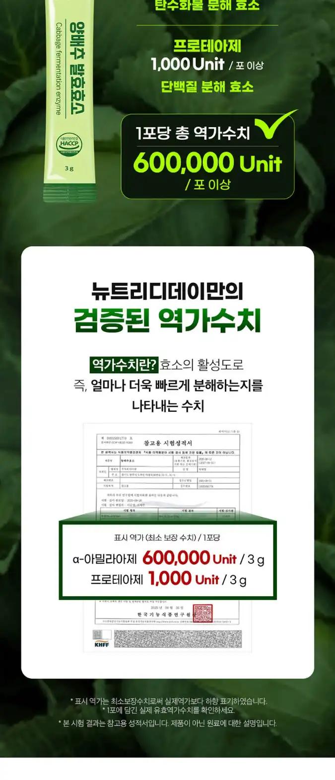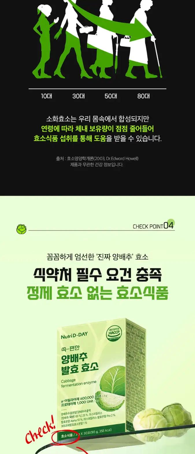 뉴트리디데이 쏙-편한 양배추 발효 효소 1박스 30포