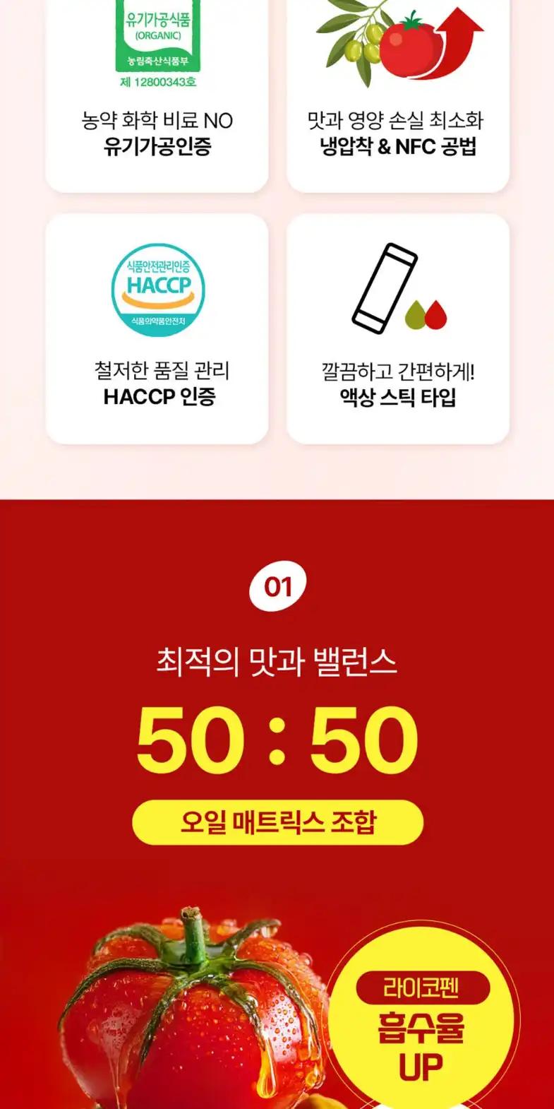 리얼 100% NFC 착즙 유기농 올리브토마토 스틱 올토샷 20ml 14포 x 6개 총84포
