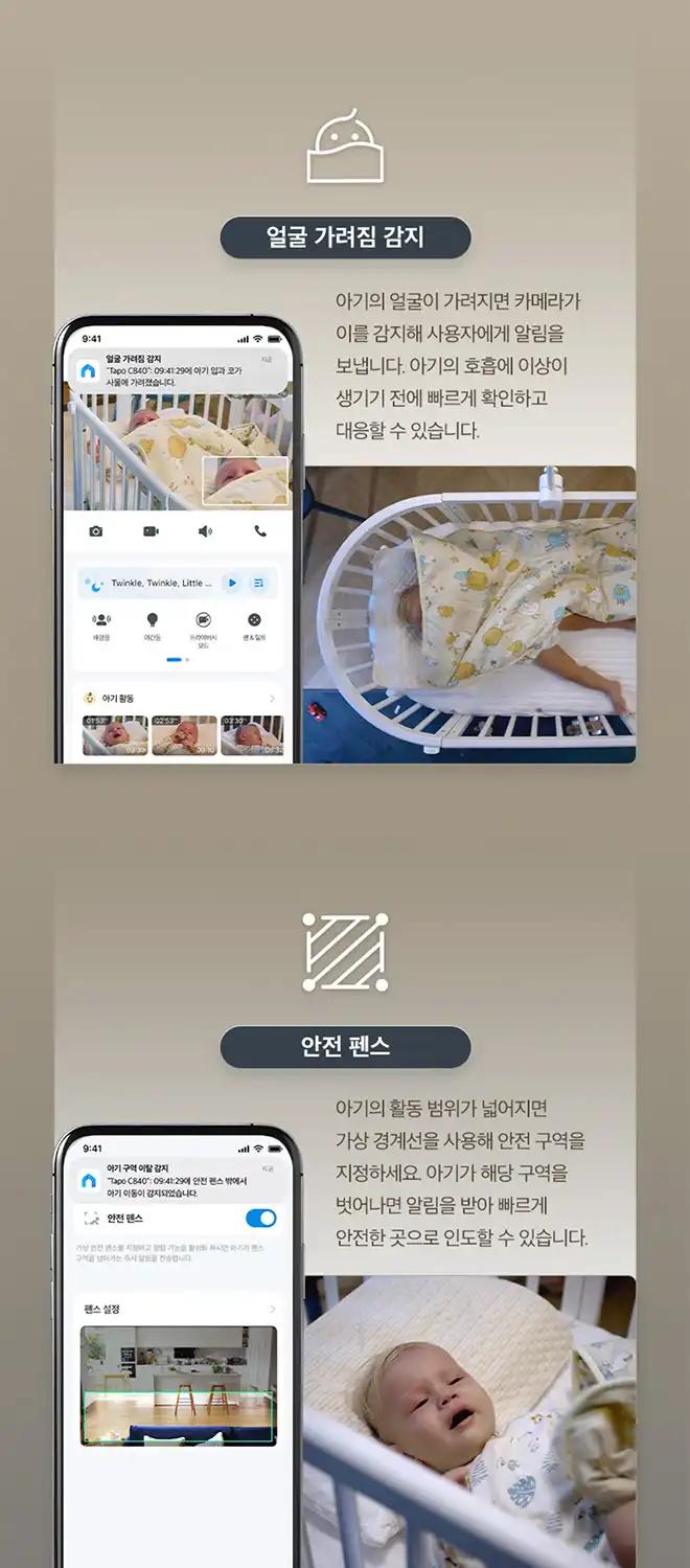 품명 : Tapo C840 베이비 모니터링 카메라 수면분석 울음감지 무드등 홈캠 CCTV