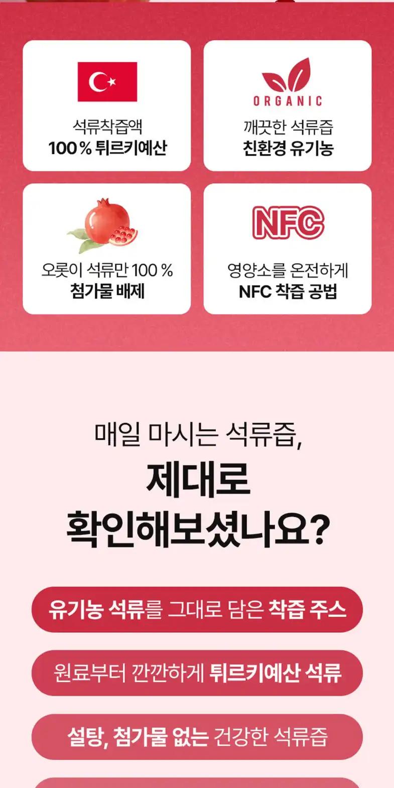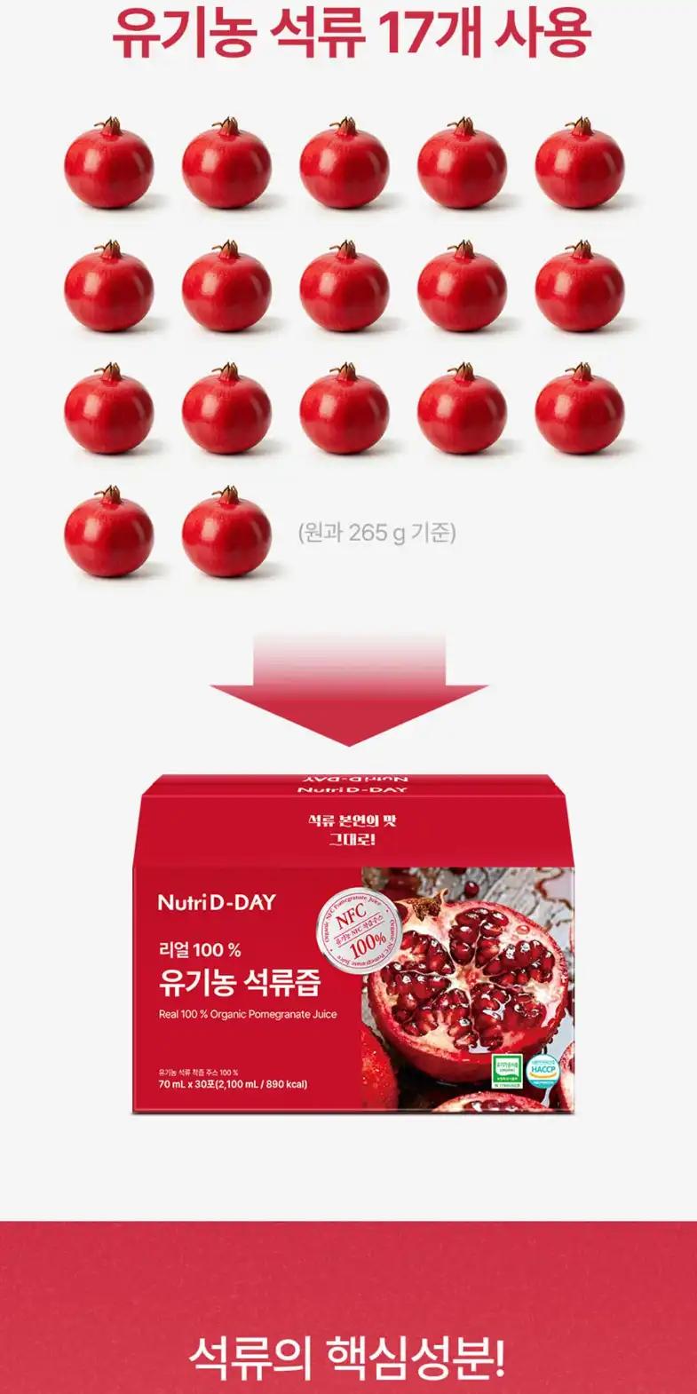 리얼 100% 유기농 석류즙70ml 3개 총 90포