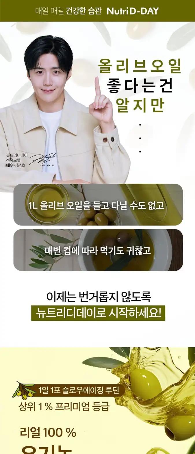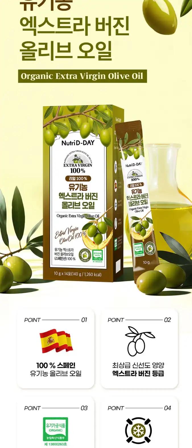 뉴트리디데이 리얼100% 유기농 엑스트라 버진 올리브 오일 1박스 14포