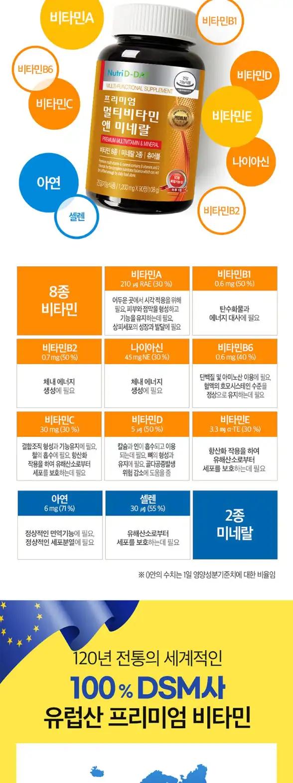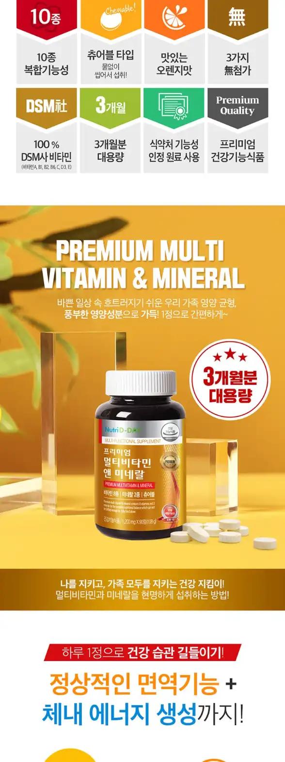 프리미엄 멀티비타민 앤 미네랄 츄어블 1병 90캡슐