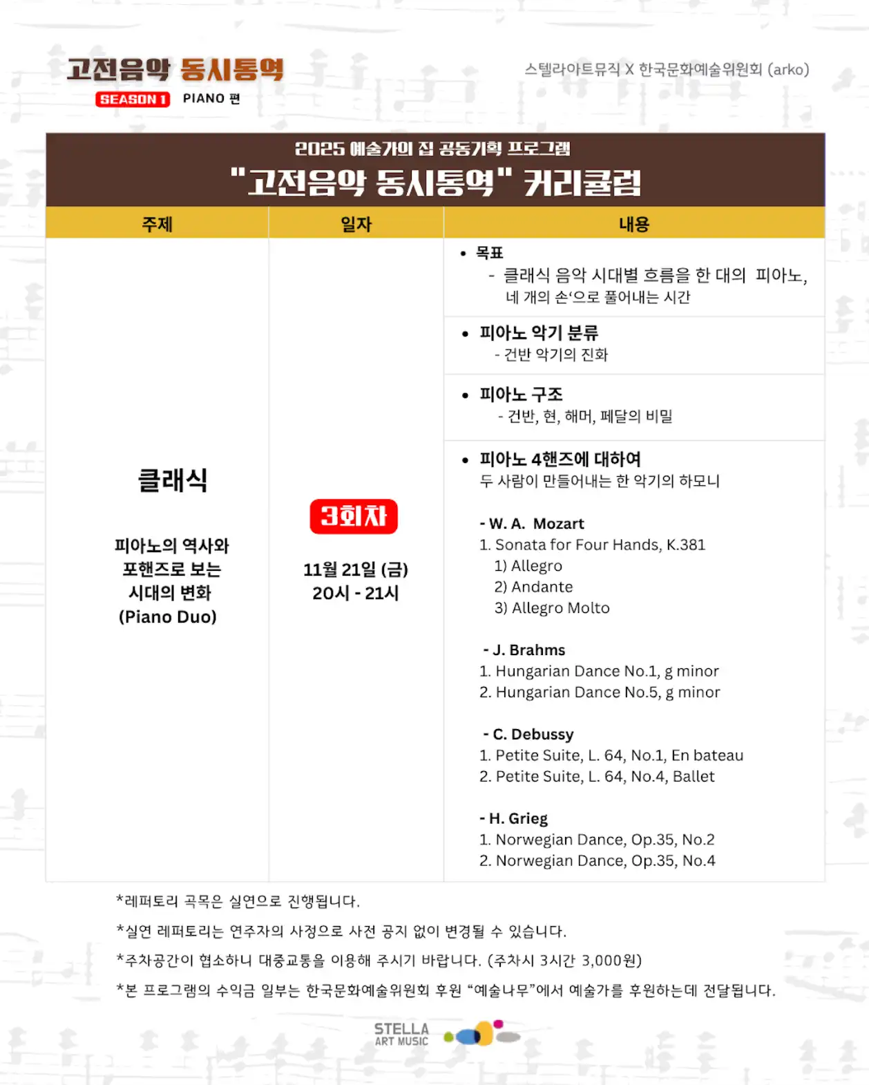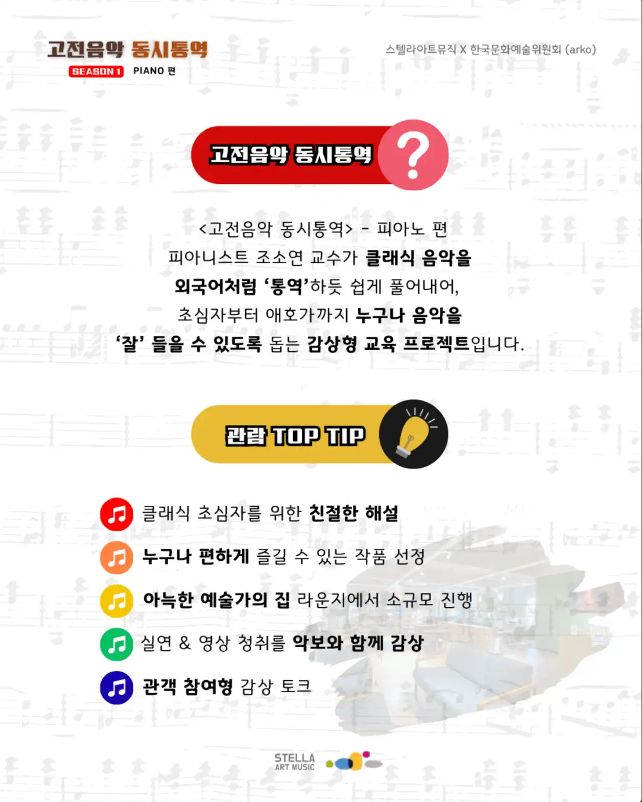 한국문화예술위원회 예술가의 집 X 스텔라아트뮤직 공동기획 프로그램 <고전음악 동시통역〉 SEASON 1 : Piano 편 관람티켓