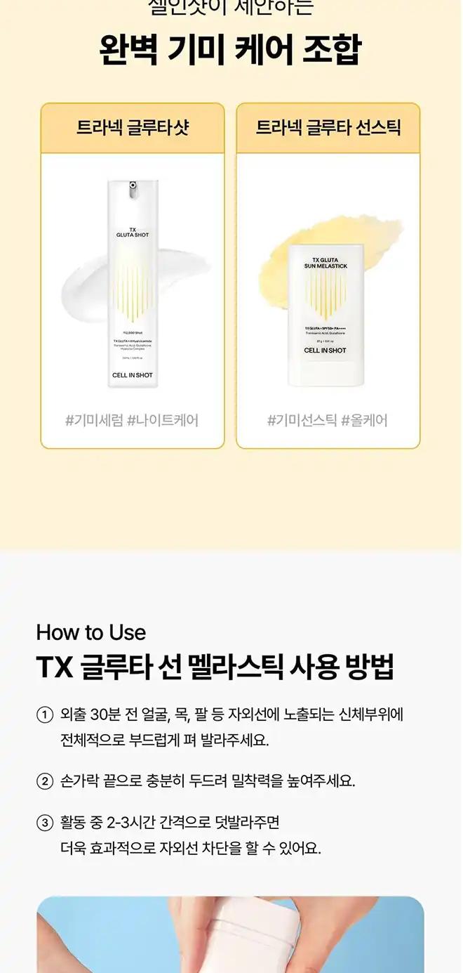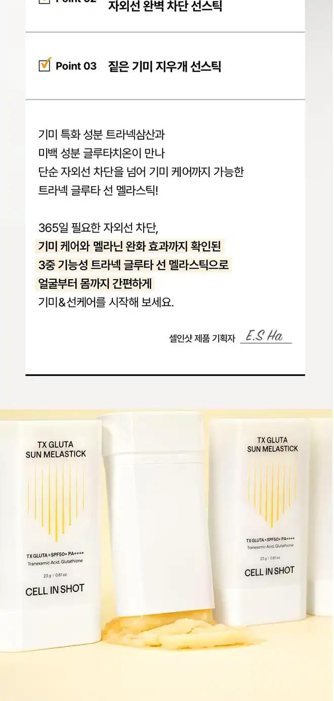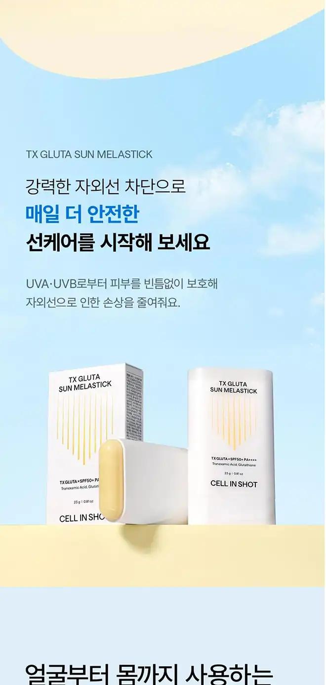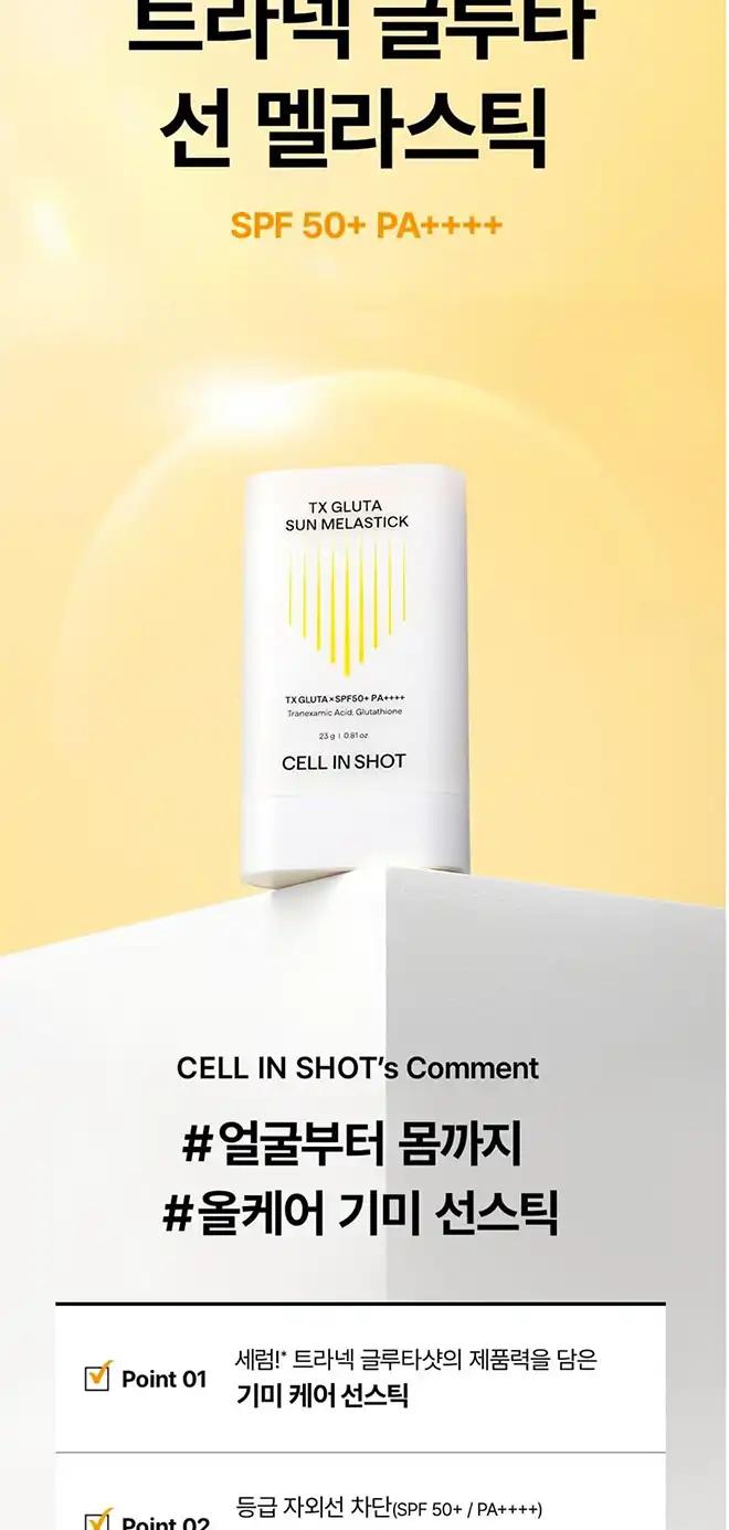 품명 : 셀인샷 트라넥 글루타 선 멜라스틱 선스틱 SPF50+ PA++++
